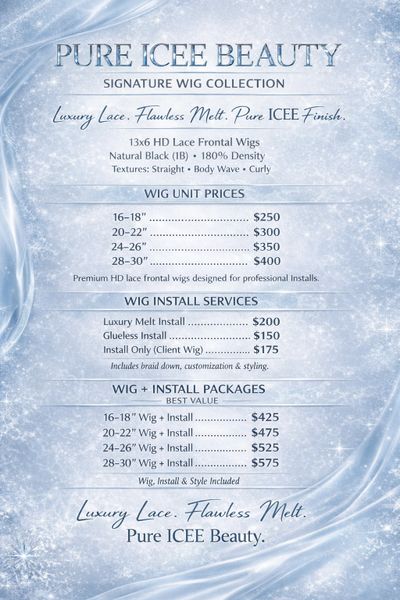 Luxury HD lace wigs paired with flawless installs designed for a seamless, natural melt. Each unit is customized and installed to enhance your look while protecting the hair underneath.